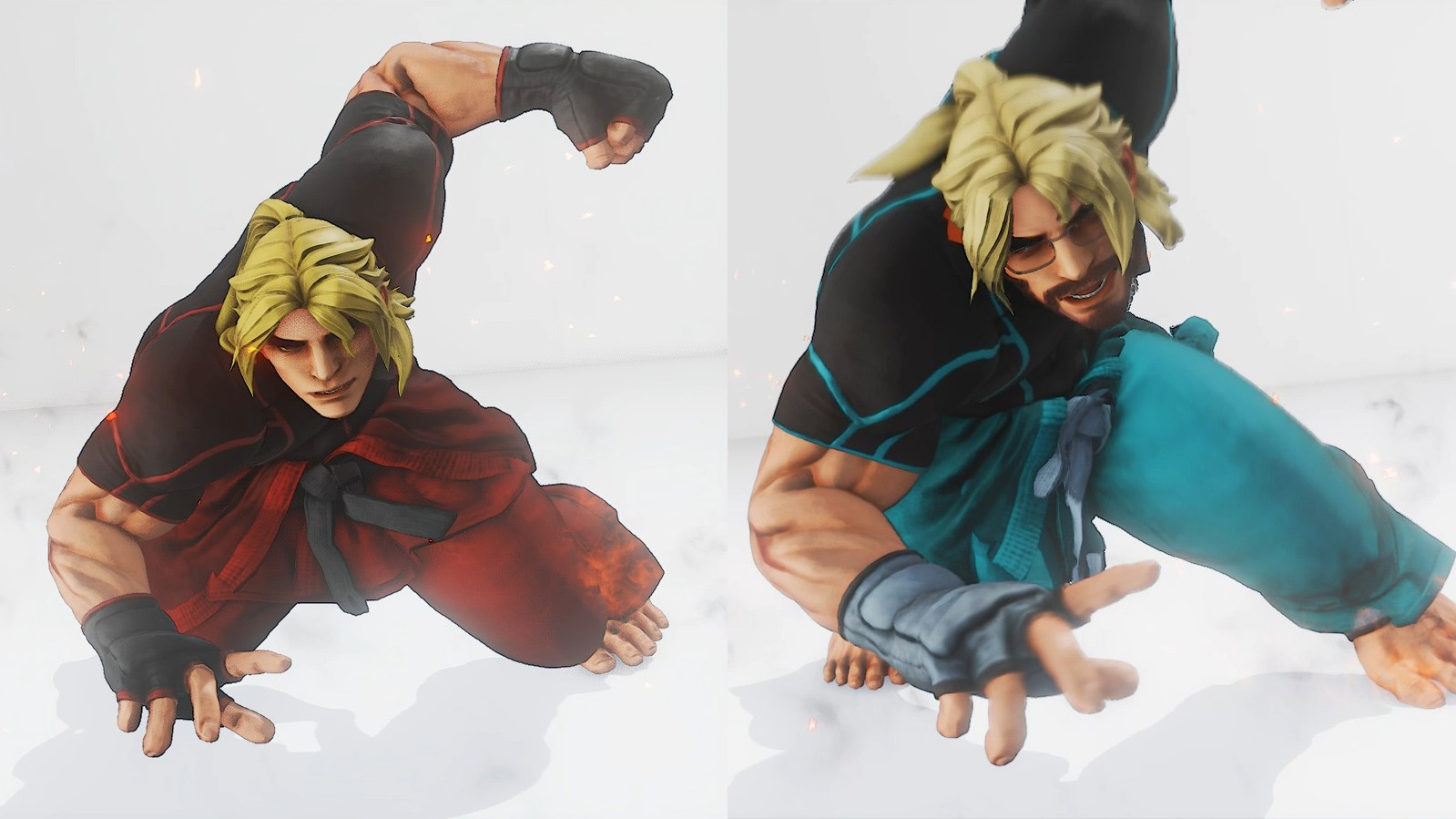 The mod replaces the default SFV Ken head and hair with a custom model inspired by the classic look of the character, also introduces a "Maximilian Dood" (fighting games youtuber and Ken main) variant with glasses and beard. The in-game body is left untouched.