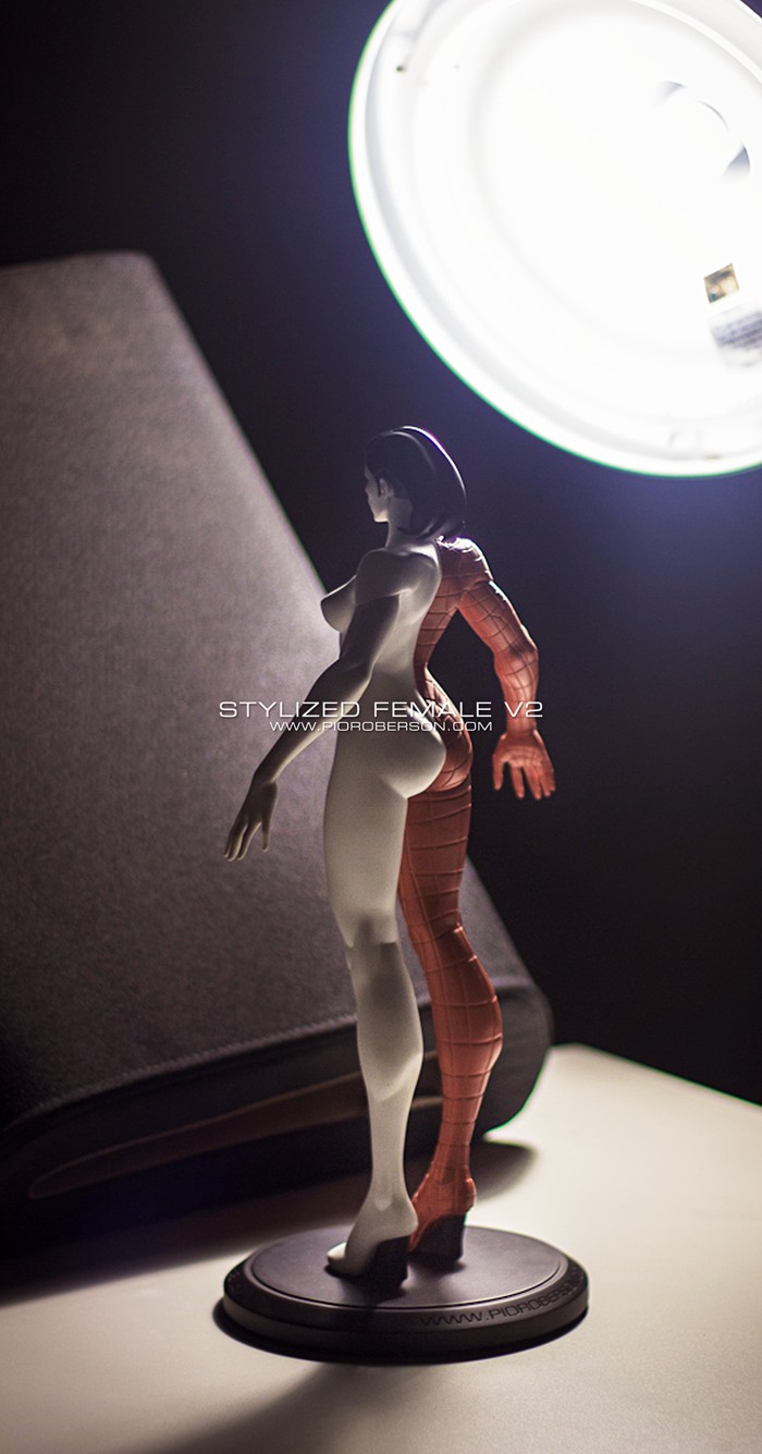 This stylized interpretation of the female heroic anatomy is intended as a practical reference tool for 3D modelers, illustrators and animators.