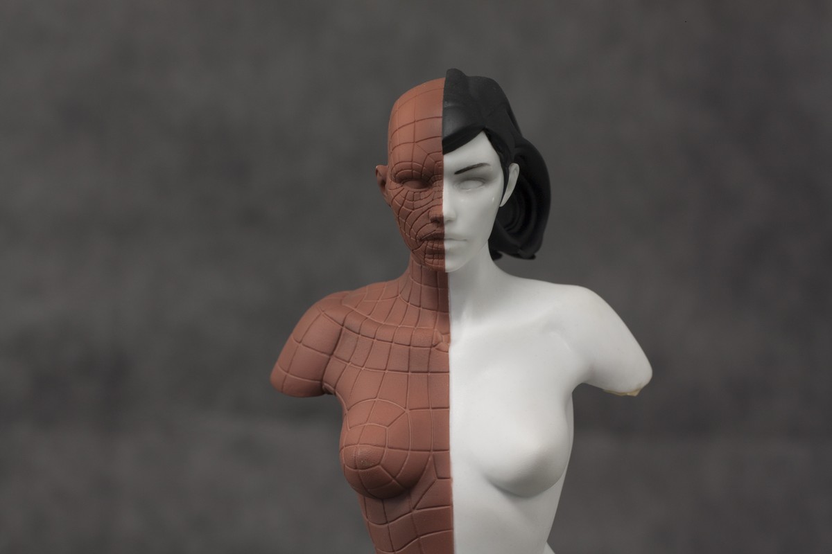 The statuette is 12 inches (30cm) tall at 1:6 scale. The design was digitally sculpted in Zbrush and Mudbox and 3D-printed, molded, and cast in polystone - a mix of polymer resin and minerals.
