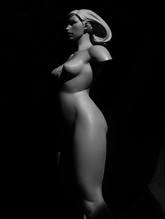 La statuette mesure 30cm, à l'échelle 1/6. Je l'ai sculptée dans Zbrush et Mudbox puis elle a été imprimée, moulée et coulée en polystone, un mélange de résine et de poudre minérale.