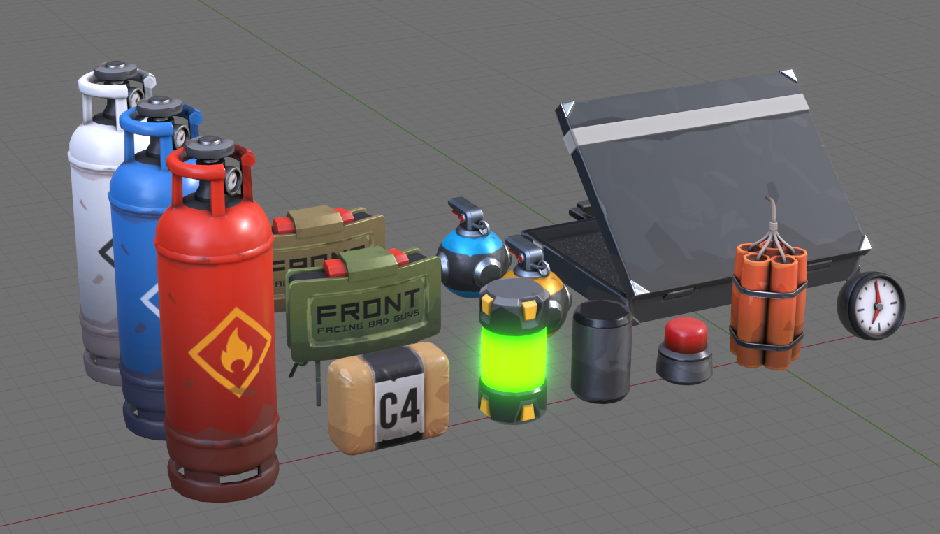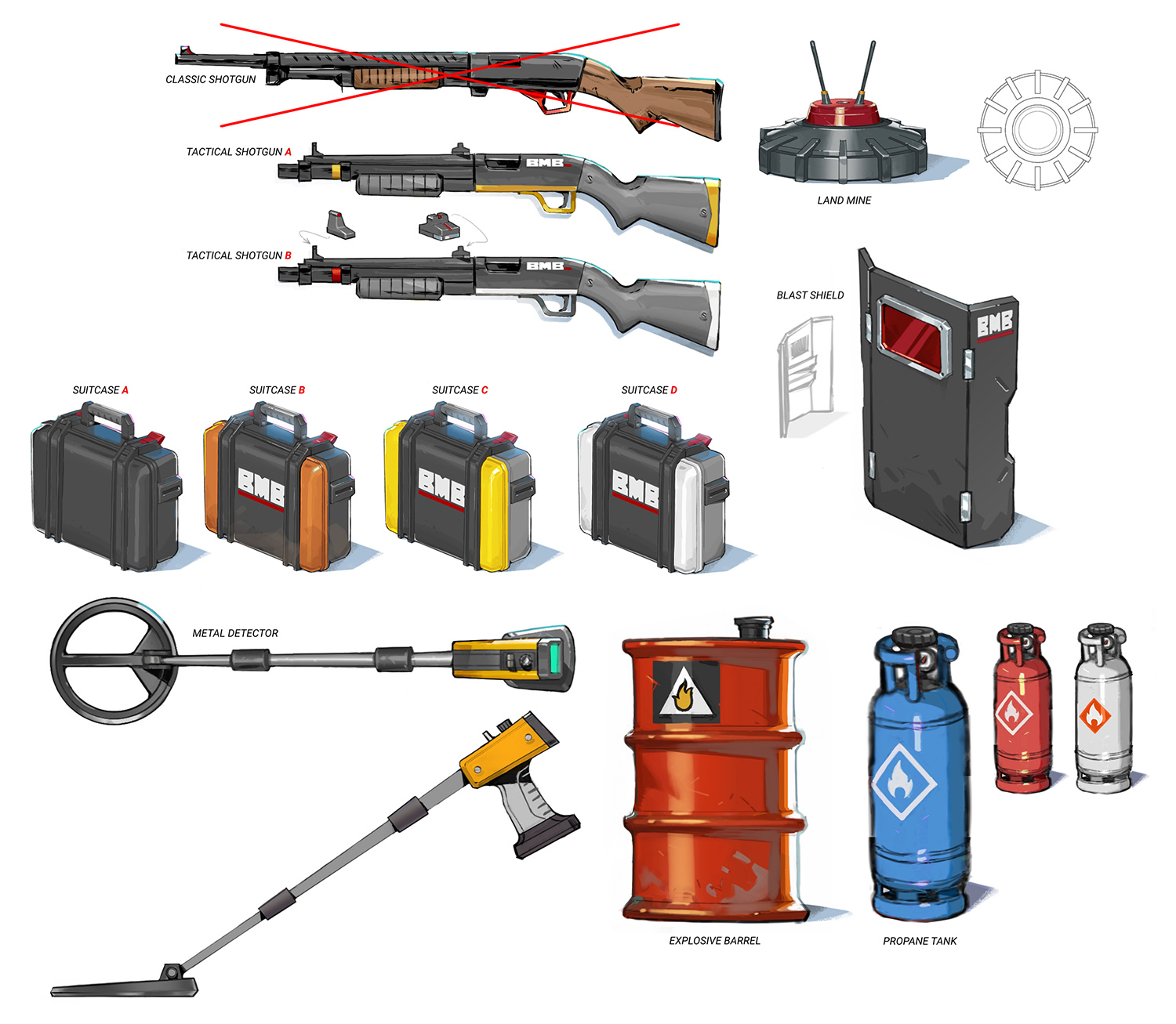 A series of prop assets complementing the Bomb Squad character set, to be used as accessories and for kitbashing.