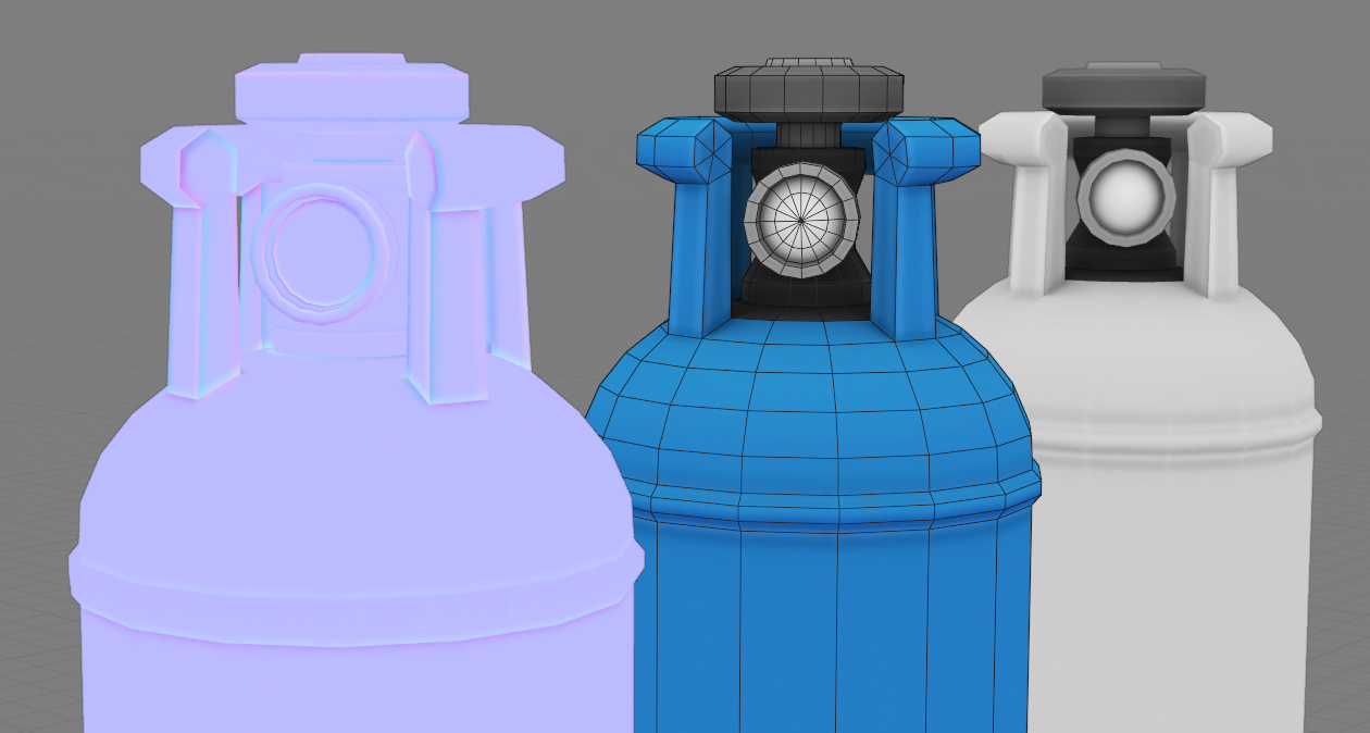Detailing is conveyed through soft and hard edges on the raw "mediumpoly" geometry, and a round edge pass is baked to the normalmap. This gives a clean TF2 look without having to model a high poly source.