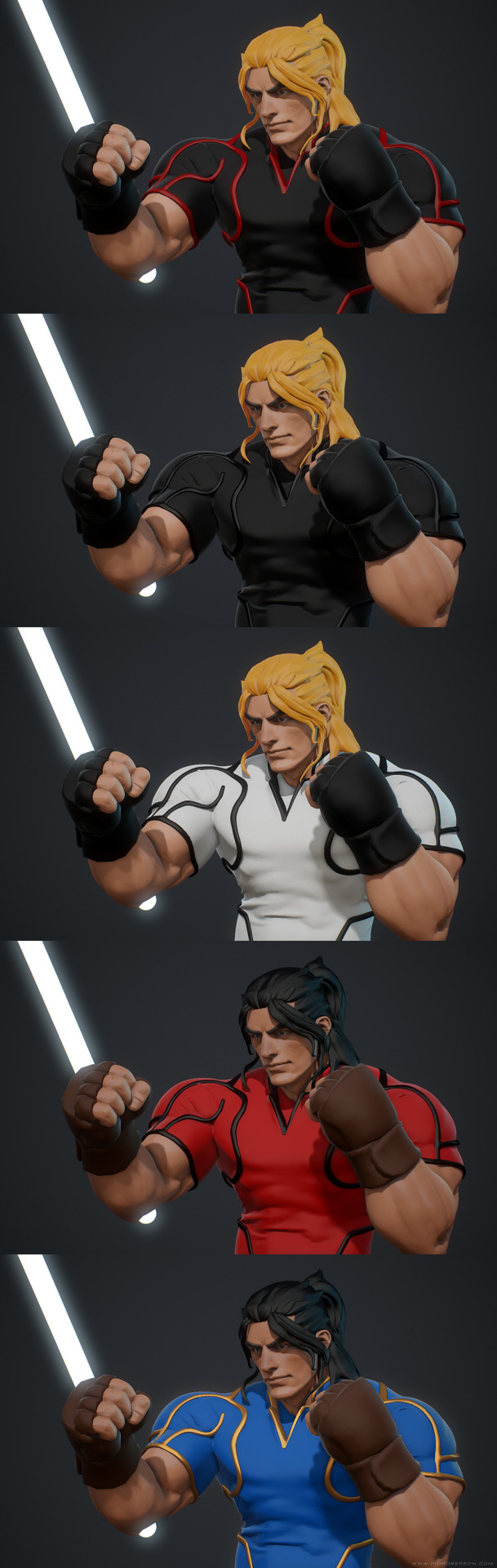 Ces sculptures numériques et modèles 3D temps-réel sont des recréations amateur de personnages de la célèbre série de jeux Street Fighter de Capcom datant des années 90, modélisés de A à Z puis insérés dans Street Fighter IV et Street Fighter V.