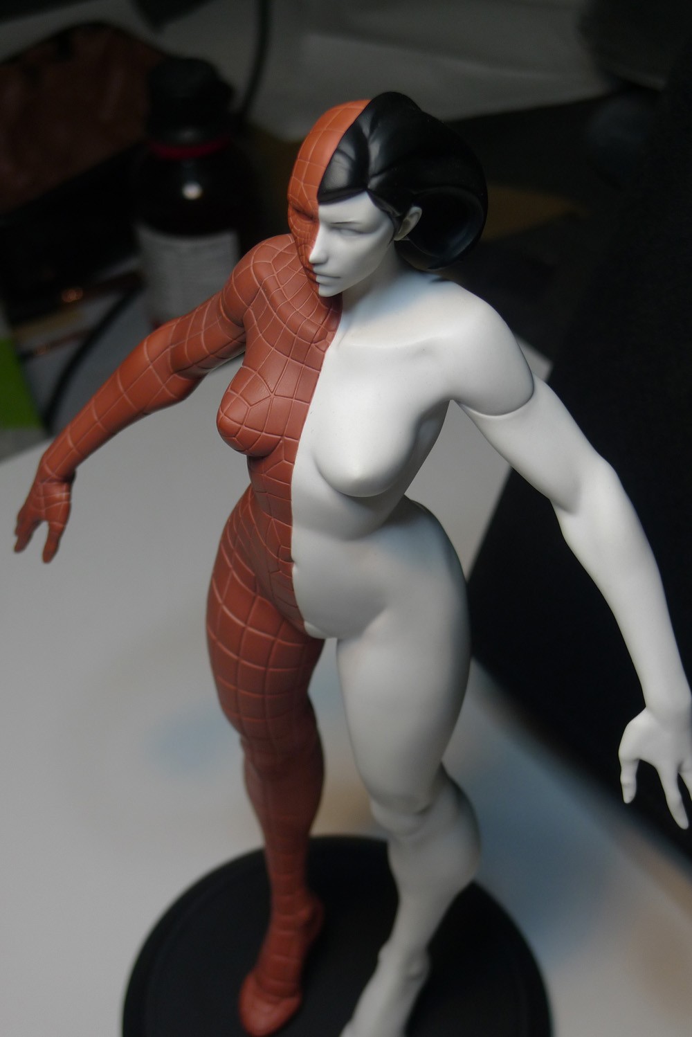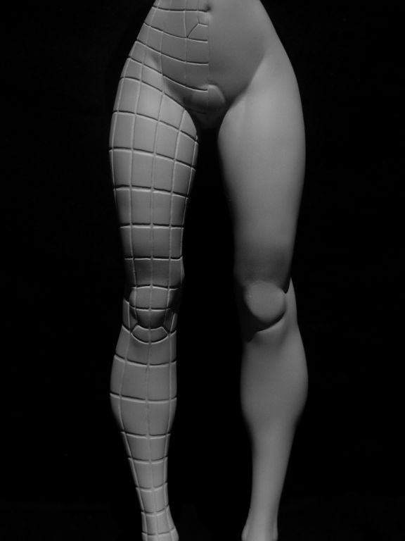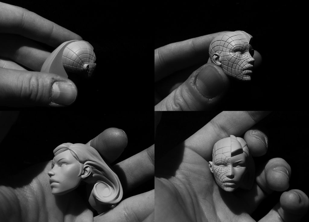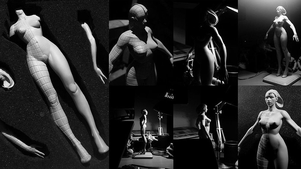 La statuette mesure 30cm, à l'échelle 1/6. Je l'ai sculptée dans Zbrush et Mudbox puis elle a été imprimée, moulée et coulée en polystone, un mélange de résine et de poudre minérale.