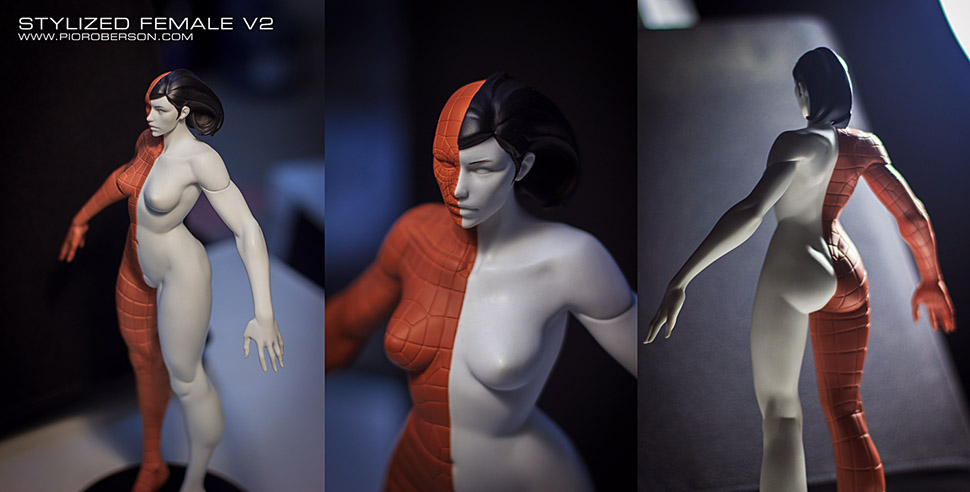 This stylized interpretation of the female heroic anatomy is intended as a practical reference tool for 3D modelers, illustrators and animators.